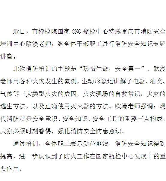 市特检院国家CNG瓶检中心举办消防安全知识专题讲座