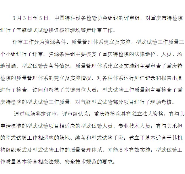 市特检院完成气瓶型式试验换证核准现场鉴定评审