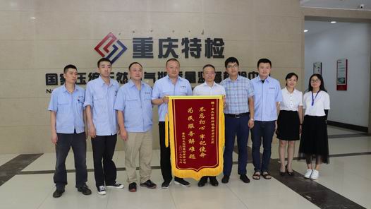 近日,重庆华森制药股份有限公司董事长、市人大代表游洪涛一行五人,将一面印有“不忘初心 牢记使命 为民服务解难题“金色大字的锦旗,送到重庆市特种设备检测研究院国家压缩天然气(CNG)气瓶质量监督检验中心,由衷感谢该院专业技术人员热情、高效为企业提供便捷服务。