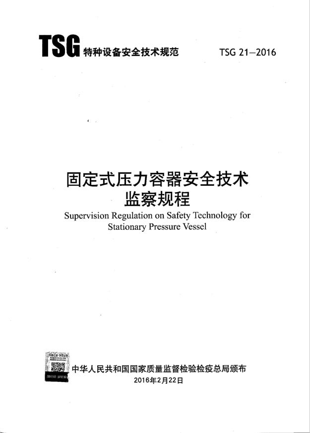 TSG 21-2016 固定式压力容器安全技术监察规程