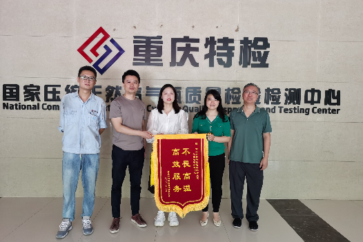 8月23日,重庆科邦运输有限责任公司将一面印有“不畏高温 高效服务”的锦旗送至市特检院国家瓶检中心,对中心工作人员热情、高效、优质的服务表示感谢。