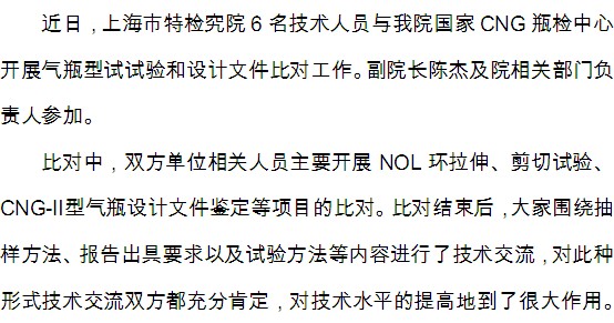 国家CNG瓶检中心与上海市特检院开展气瓶型试试验比对工作