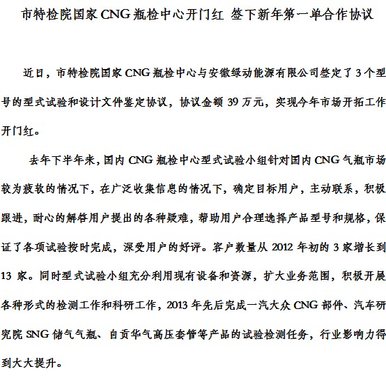 市特检院国家CNG瓶检中心开门红 签下新年第一单合作协议