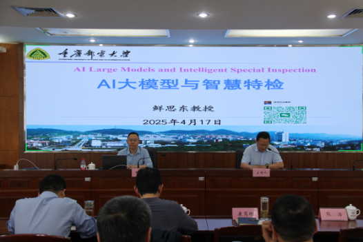 近日,市特检院聚焦人工智能赋能特检事业高质量发展,特邀重庆邮电大学鲜思东教授作“AI大模型与智慧特检”专题报告。院党委书记康笃刚主持讲座。