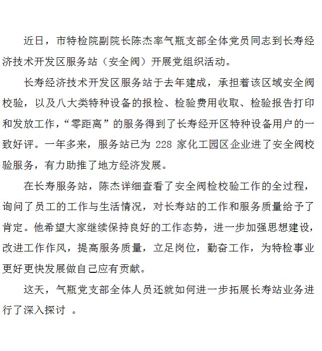 市特检院副院长陈杰率气瓶党支部到长寿经开发区服务站开展活动