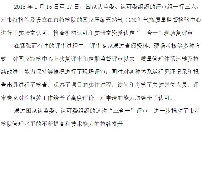 市特检院完成国家CNG气瓶质量监督检验中心“三合一”现场复评审工作